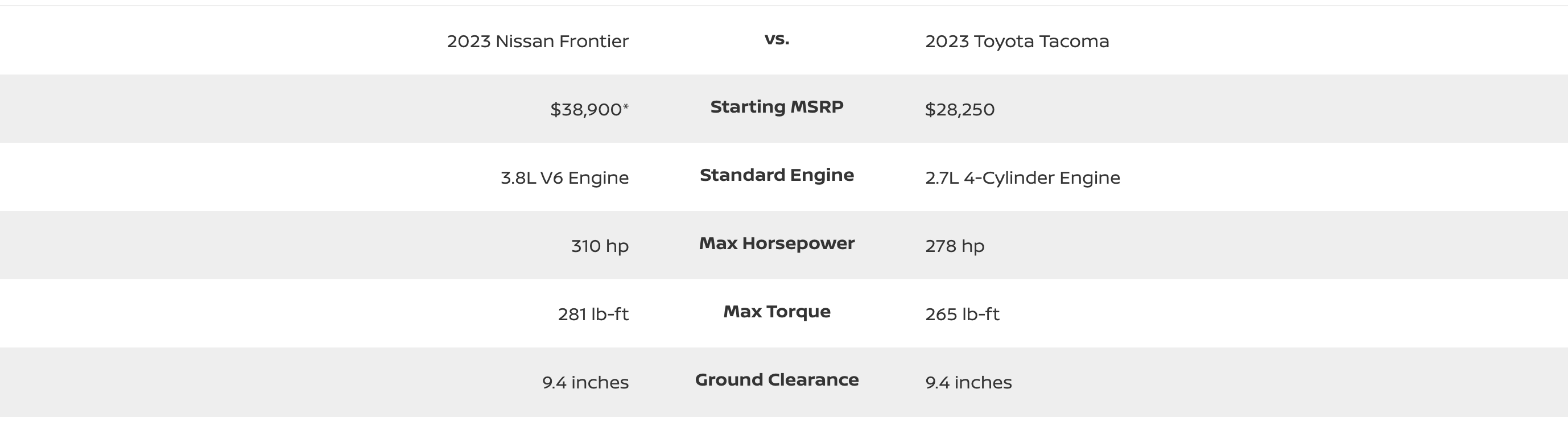2023 Nissan Frontier vs. 2023 Toyota Tacoma