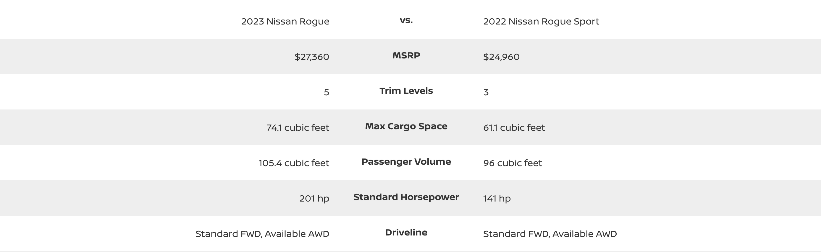 2023 Nissan Rogue vs. 2022 Nissan Rogue Sport