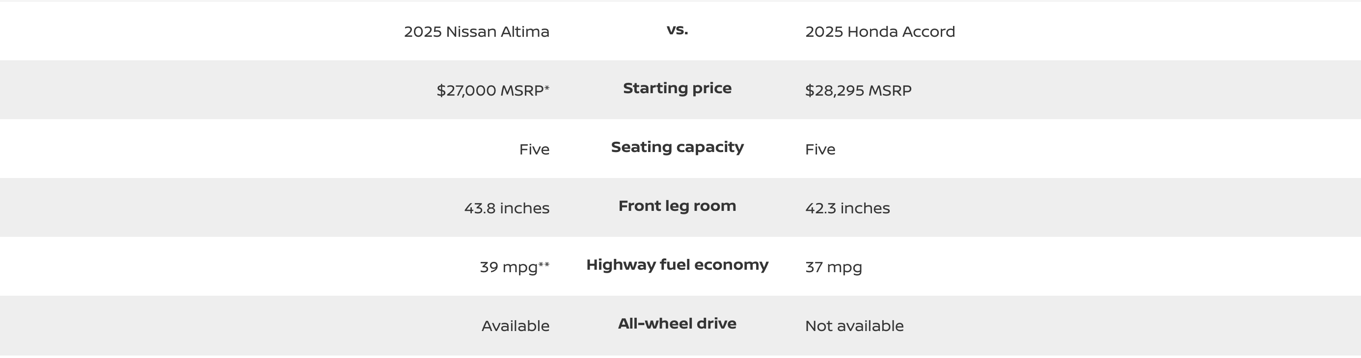 2025 Nissan Altima vs. Honda Accord