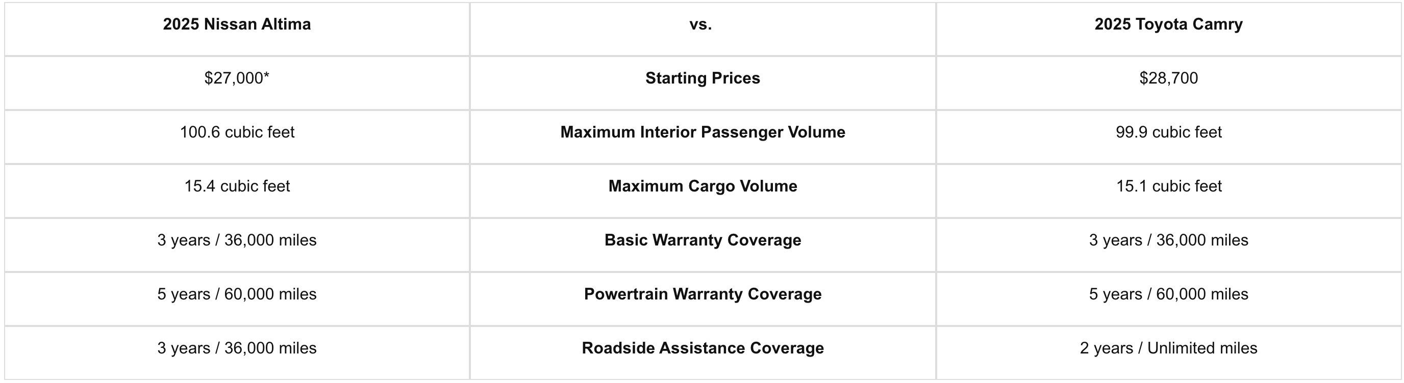 2025 Altima vs. Camry: Warranty & Roadside Assistance Coverage