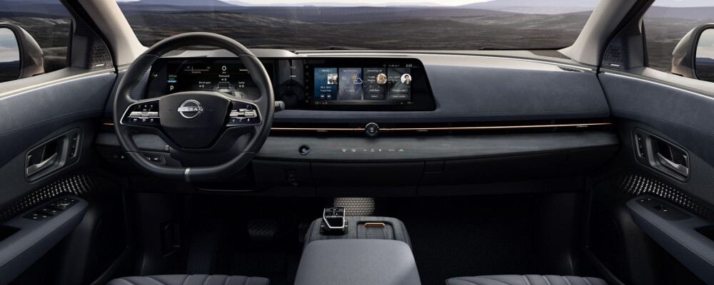 The 2023 Nissan ARIYA is an all-electric vehicle that prioritizes power and zero-emissions performance, but its cabin doesn’t disappoint when it comes to comfort and space. Inside, you can find the space you and your passengers expect from an SUV, as well as the multitude of comforts and technologies you want from an ultra-modern EV. Read on to learn more about the Nissan ARIYA interior dimensions and features, then browse our new Nissan ARIYA inventory to find yours.